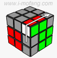 | 【记忆】 | 第1步R把角块和棱块分离,第2步的U为藏角做准备,之后的R'把角块藏起来(目的让棱块移动到想去的位置),第4步U2棱块移到右边(即想去的位置),此时,角块和棱块形成了形态E2。 |